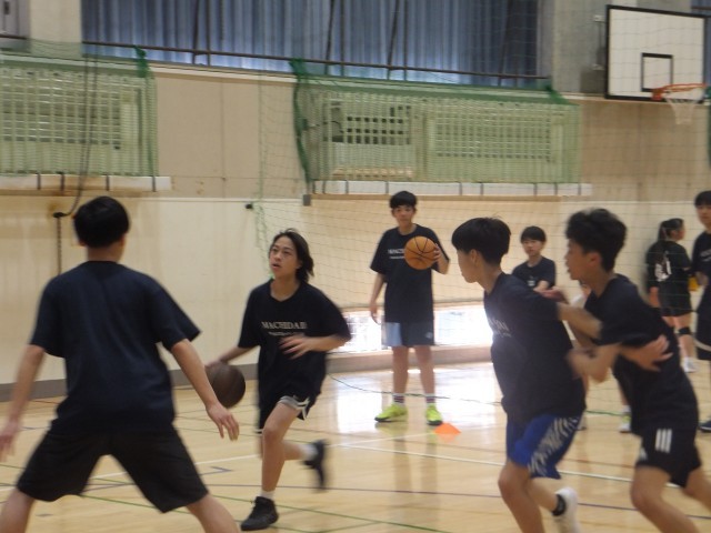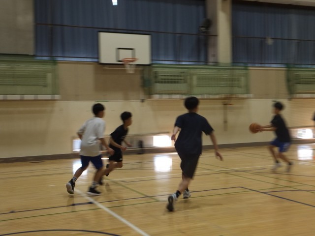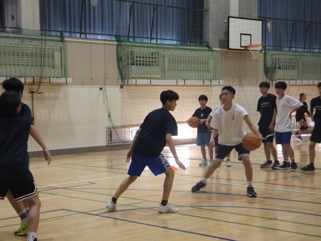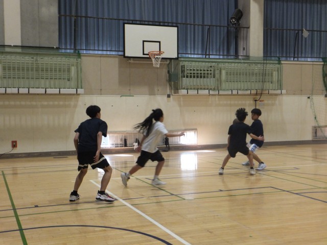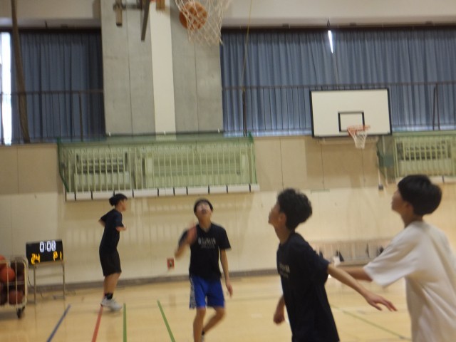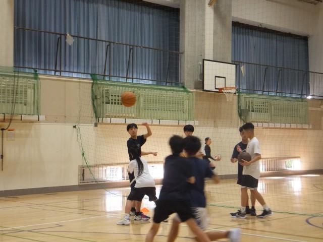 体育館では、バスケットボール部とバレーボール部が活動をしていました。