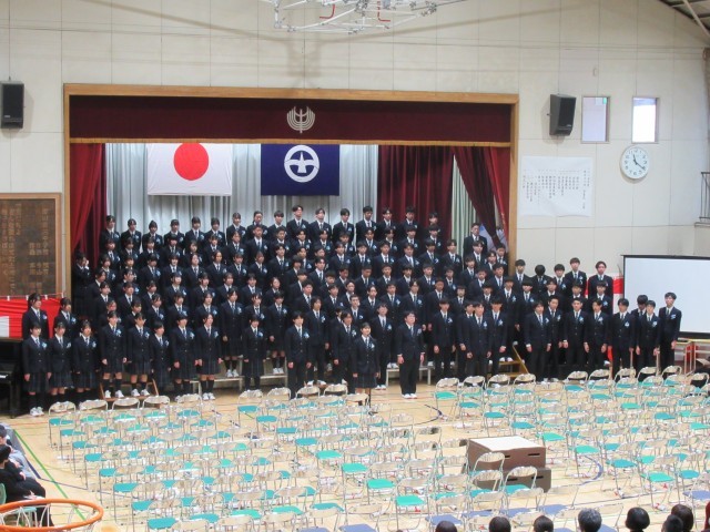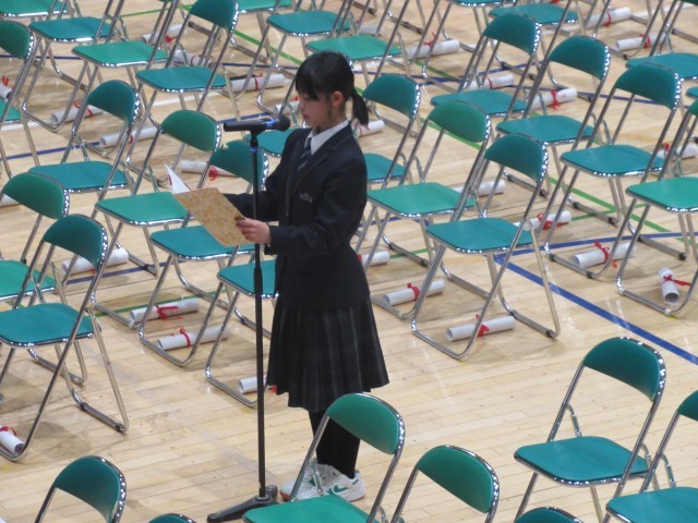 在校生代表の言葉、朝の練習の成果が出た、立派な送る言葉でした。