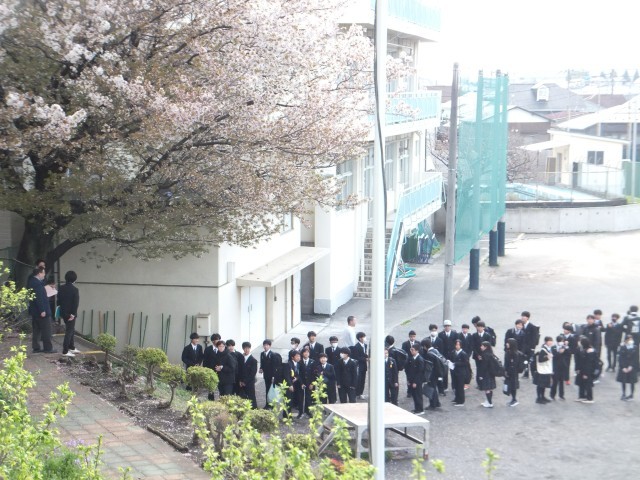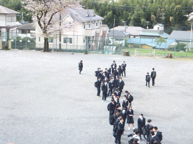 4月6日(月)午前8時、登校時刻に合わせて次々の三中生が校門からは登校してきました。