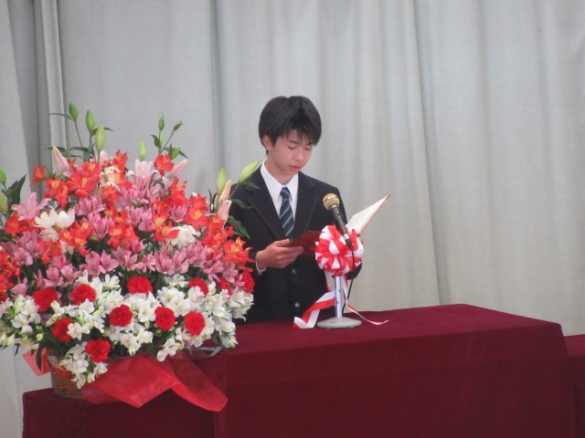 在校生代表生徒による「歓迎の言葉」、そして新入生代表による「誓いの言葉」と続きました。