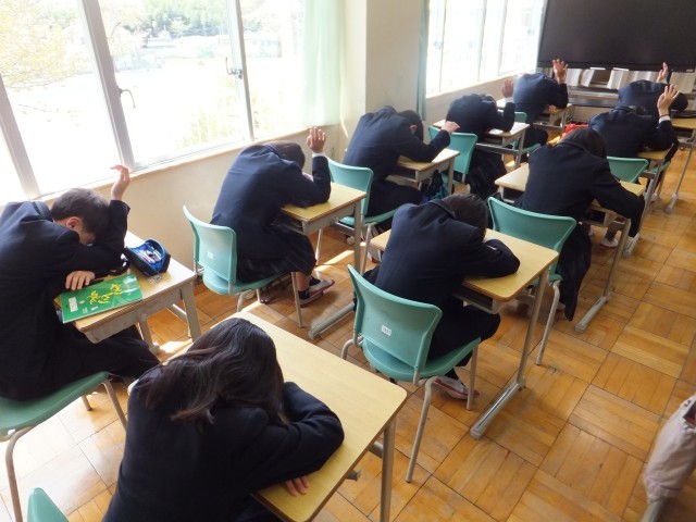 机に伏せているのは、委員、係決めで投票をしている場面です。