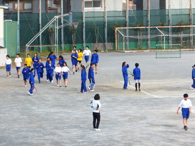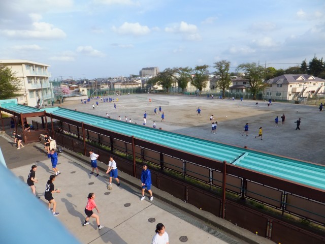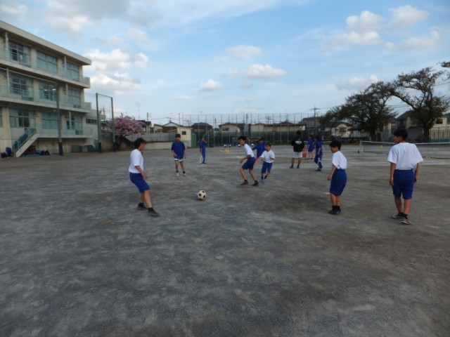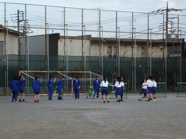 4月14日(火)放課後、校庭からたくさんの三中生の声。
