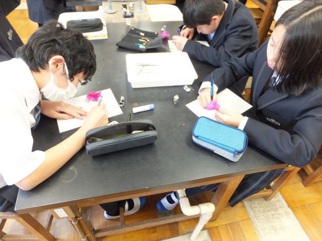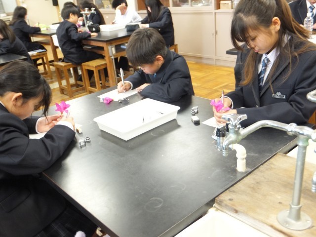 1年生の理科は、つつじの花びらの観察です。