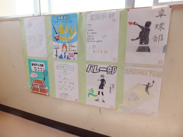最後の写真は、廊下に掲示された1年生向けの部活動入部のお誘いポスターです。