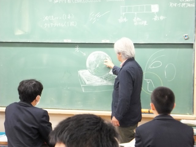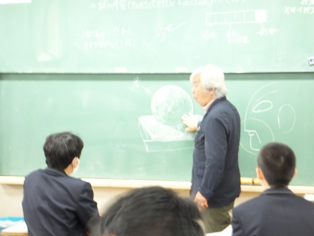 先生がチョークで描かれた球の絵を見て、「わー」という歓声が上がりました。