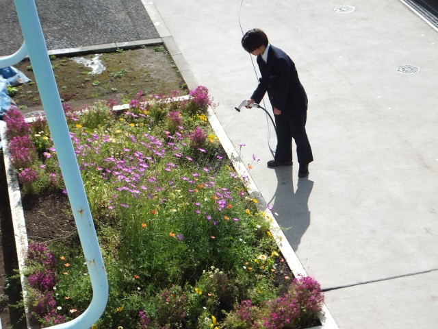 土曜日授業 公開日 2026/04/25 更新日 2026/04/25 お知らせ 4月25日(土)、本日は土曜日授業です。登校生徒が通る中、朝から学校花壇に水を上げてくれています。きょうは授業を公開していますので、ぜひご来校ください。