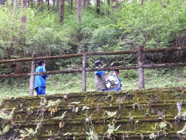 写真は、「入村式」の様子と、そのあと早速飯盒炊爨が始まりました。