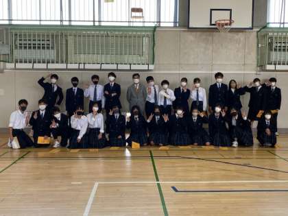 5月8日(土)「生徒総会」 公開日 2021/05/10 更新日 2021/05/10 お知らせ 生徒総会(オンライン)を終え、校長先生及び各委員長と質問者が集まり写真撮影を行いました。緊張感から開放された生徒の安堵の様子が印象的でした。