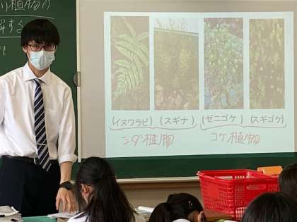 教育実習生による理科の研究授業が行われました。ICTを活用し、生徒の理解が深まるよう視覚提示ができました。生徒たちは、真剣な眼差しで実習生の授業に食い入っていました。