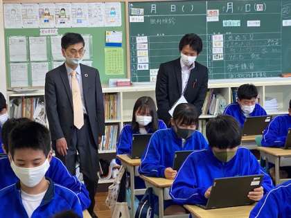 町田市教育委員会より、指導主事の先生が視察のため来校されました。職員玄関に入るなり、展示されている「書」や「絵画」、「オブジェ」について「素晴らしいですね!」とお褒めの言葉をいただきました。また、授業観察では、「研究の成果が顕著に伺えます。」と本校の取組について高く評価されました。