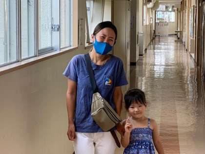 写真下段:「お姉ちゃんに水筒届けに来たの!」