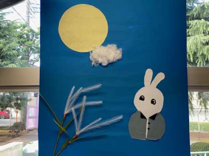 職員玄関オブジェの月も「中秋の名月」です。今年は満月と同日のため、ほぼまん丸なお月さまが楽しめます。