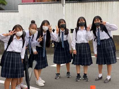 9月25日(土)「土曜授業」 公開日 2021/09/25 更新日 2021/09/25 お知らせ 写真は、土曜授業を終え下校する2年生の女子集団です。「さようなら!」と声をかけると「今日も楽しかったでーす! … でも、お腹すいた!」と笑顔で返します。