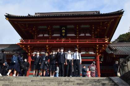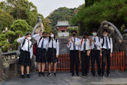 北鎌倉OR鎌倉駅の到着チェックを受け、「いざ鎌倉!」。公共機関でのマナーや寺社仏閣での作法など、修学旅行に向けた学びを充実させます。実り豊かな1日となります。