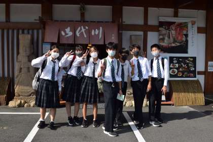 鎌倉より江ノ電に揺られ長谷駅で下車、大仏とご対面です。大仏の中に入り、学校では学べないことを体験し事後学習に生かします。写真下段は、昼食のお店の前で記念撮影をする様子です。