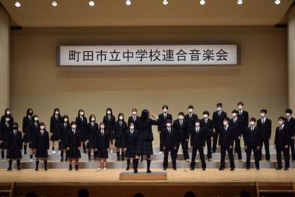 町田市立中学校連合音楽会が相模原女子大学グリーンホールにて開催されました。本校からは、先日行われた合唱コンクールで最優秀賞を受賞した3年C組が代表として出場しました。