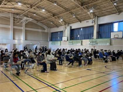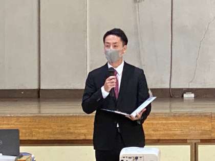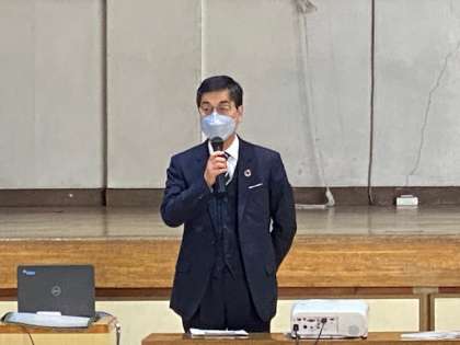 1月20日(木)から22日(土)に実施される第1学年の移動教室保護者説明会を開催しました。校長先生から、学校・保護者が連携した感染防止対策の重要性を話されました。学年主任からは、スライドを活用した概要説明がありました。