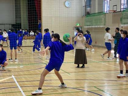 2学期のまとめとなる1学年レクリェーションが体育館で行われました。男女に分かれ、ドッヂボール大会で汗を流し交流を深めます。教員も同じ目線に立ち、一喜一憂します。実行委員の皆さん、ご苦労さまでした。