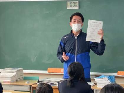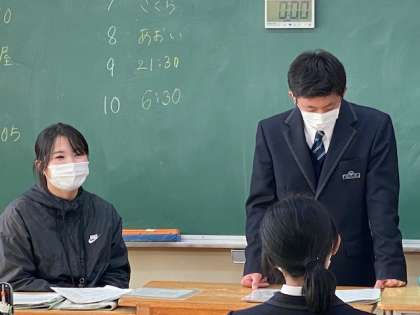 写真は、1年生スキー移動教室の事前学習の様子です。しおりの読み合わせ、係活動やルール確認が行われます。教員によるコロナ感染予防対策の説明に最も時間が割かれました。