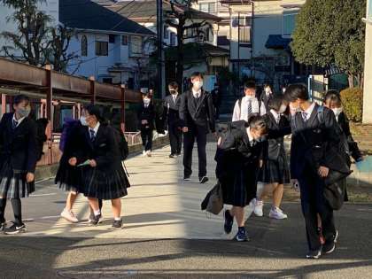 西門をくぐると真正面から気持ちの良い朝陽を受けます。元気なあいさつがこだまする様子に心が洗われます。