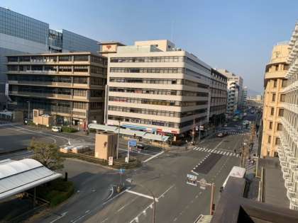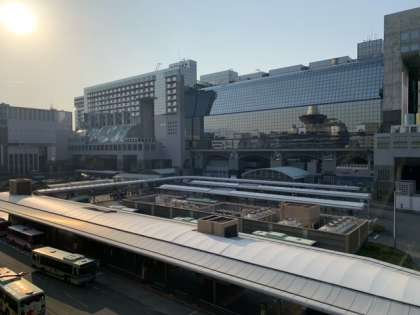 出発チェックを済ませ、京都をタクシーで回ります。 写真は、宿から京都駅の眺めです。駅から2分と至便です。