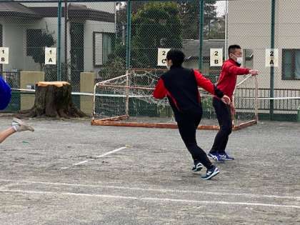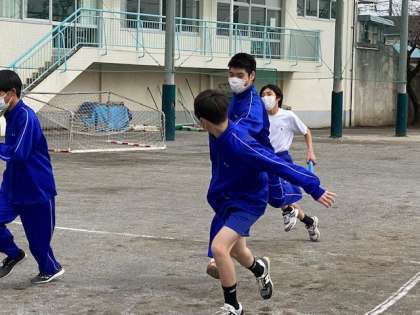写真は、球技大会最後に行われた全員リレーの様子です。教員も風を切り、颯爽と走ります。