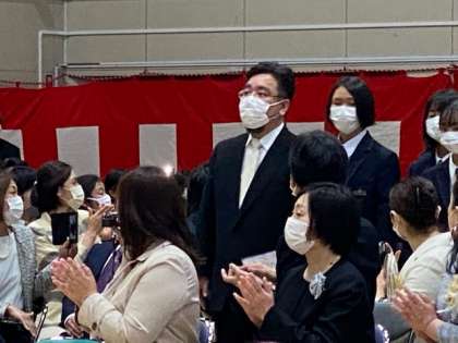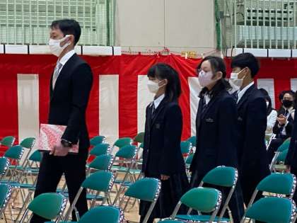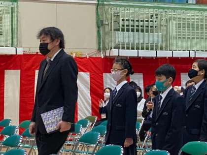 クラス担任を先頭に、新入生の入場です。ダボダボの制服に袖を通し、少し緊張気味な姿が印象的でした。
