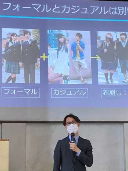 4月11日(月)「1年生オリエンテーション」 公開日 2022/04/12 更新日 2022/04/12 お知らせ トンボから講師をお迎えし、1年生のオリエンテーションとした「標準服の着こなし講座」を開催しました。