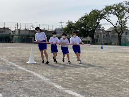 体育大会に向け、少しずつ熱が帯びてきました。写真は、朝練で学年種目に取り組む1年生の様子です。