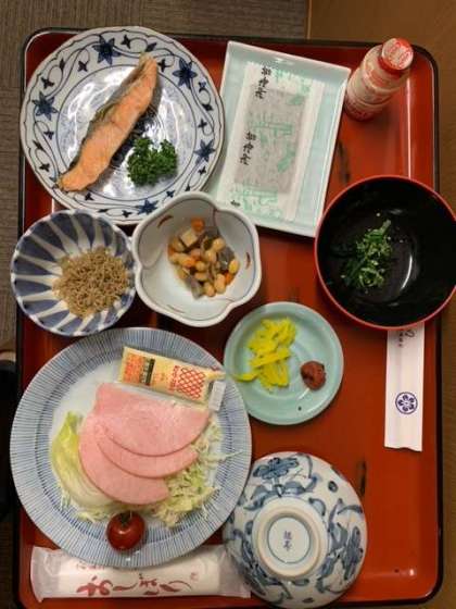 修学旅行3日目、楽しい時間はあっという間に過ぎ去ります。写真は、京都「ひふみ旅館」朝食メニューです。
