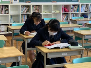 学年末考査1日目、7時15分から早朝学習に取り組む2年生の様子です。3年生の背中を追いかけます!
