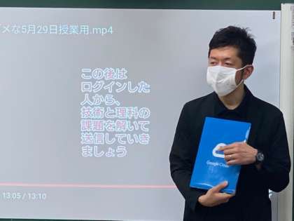 5月30日(金)「ICT教育1」 公開日 2020/05/29 更新日 2020/05/29 お知らせ 町田市のICT支援を担っている「株式会社ストリートスマート」の平川さんをお招きし、3年生全員が「google Class room」へ参加しました。生徒は、使用予定のICT機器(スマホやノートパソコン)を学校に持ち込み、動作確認を行いました。