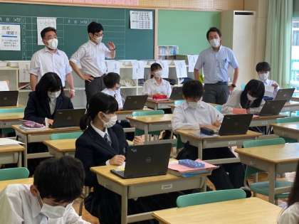 写真は、2年生のChromebookを活用した、ICT教育の様子です。アカウントとパスワードを設定し、課題の投稿にもトライしました。また、3年生は「Googleclassroom」の理解が進み、参加率が97%となっております。今度ともICT教育を推進してまいります。ご協力をお願いいたします。