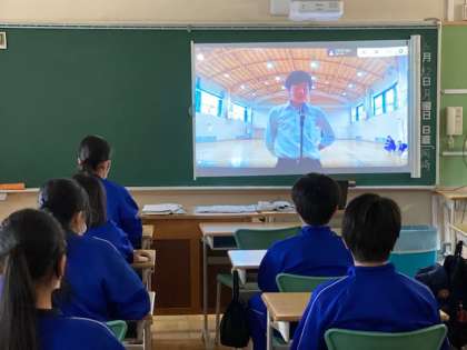 生徒は、教室の自席から「Meet機能」で生徒会朝礼に参加します。