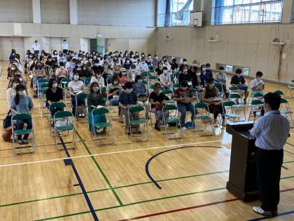 「進路説明会2」 公開日 2020/06/24 更新日 2020/06/24 お知らせ 写真は、保護者を対象とした進路説明会第2部の様子です。校長先生から、保護者の事務的・経済的な支援の重要性についてお話がありました。