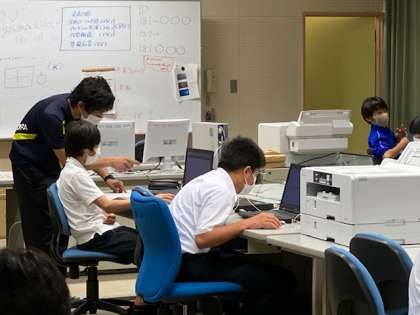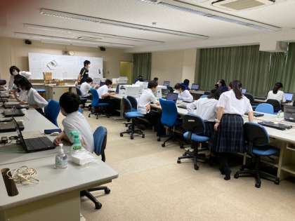 「密集」の回避のため、空き教室を使います。写真は、PCルームでの授業の様子です。