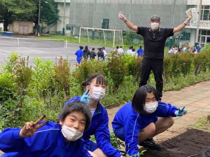 「地域協働活動4」 公開日 2020/07/07 更新日 2020/07/07 お知らせ 花壇には、サルビア、ジニアリネアリス、フレンチマリーゴールド、ニチニチソウが植えられます。「チームワーク!」「お花を大切に!」「美しく!」の3か条を大切に花壇づくりに取り組みます。
