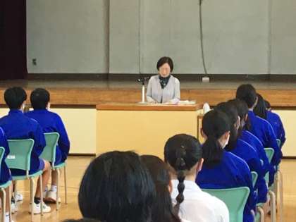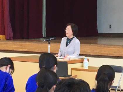 伊藤秀子様(公益社団法人 被害者支援都民センター 自助グループ)を講師としてお招きし、「命の大切さを学ぶ教室」としたテーマでご講演をいただきました。1.2年生はリモートによる教室での視聴となりました。
