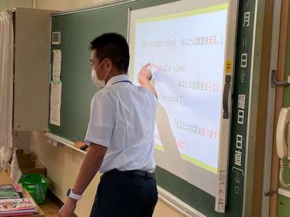 9月11日(金)「授業観察」 公開日 2020/09/11 更新日 2020/09/16 お知らせ 授業の導入がルーチン化しており、リズム良く流れていきます。子供達は主体性をもって発音活動に取り組みます。
