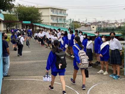 9月15日(火)「生徒会役員選挙」 公開日 2020/09/16 更新日 2020/09/16 お知らせ 9月19日(土)の生徒会役員選挙に向けた、朝の選挙運動に力が入ります。推薦者の応援の声がこだまします。