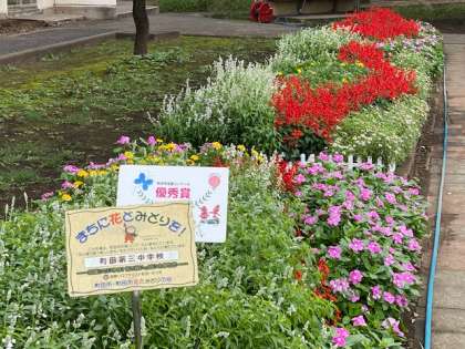 町田市花壇コンクールで、生徒花壇は優秀賞を受賞しました。花と緑いっぱいの町田、美しい学校!地域と協働して取り組みます。