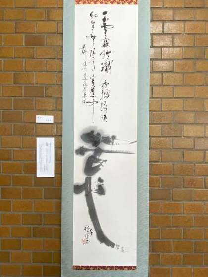 写真は、職員玄関ギャラリーに展示した 加固 明子さん作の書「苦心」です。