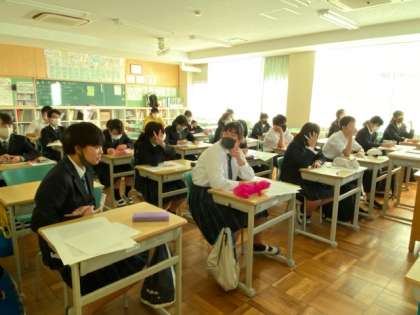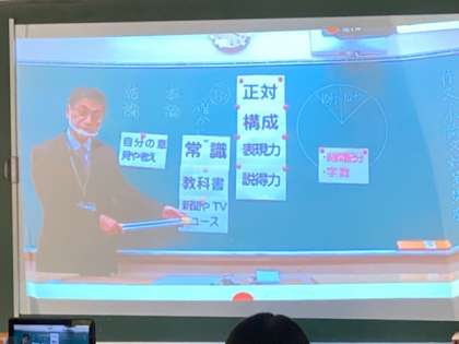 校長先生による、都立推薦入試における小論文・作文対策の補修が行われました。過去三年間の作文課題の分析と解答例など、手厚い指導がありました。81名の参加のため、Meet機能でクラスを分散して行われました。