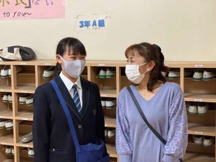 「第一志望の高校が受験できるよう、頑張ってほしいです。」という保護者の激励に、笑顔で応えます。