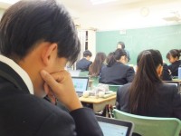 こちらは1年生の数学です。黙々と問題に取り組んでいたり、友だちと確認しあったり、...