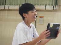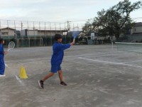 体育館手前は、バドミントン部です。ノックで上がったシャトルを、力強く打っていまし...