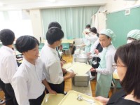 9月29日(金)、給食の時間です。配膳台の消毒やワゴンの食管を運んだりから給食は...