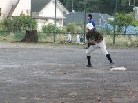 校庭では、顧問の先生からノックを受けています。大きな声を出して練習に取り組んでい...