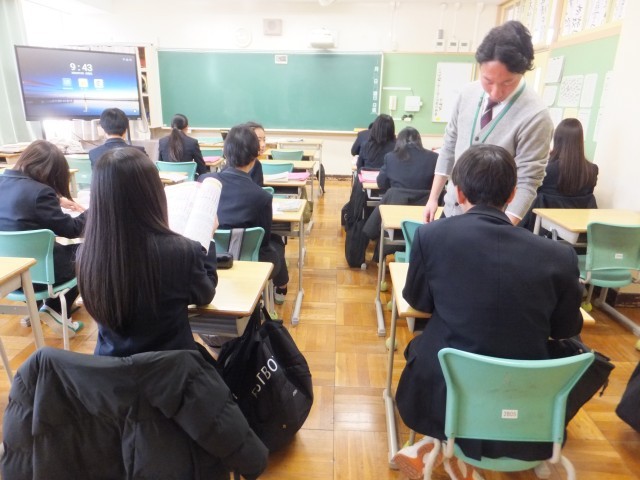 1月26日(月)2校時です。先々週の移動教室から1年生が、先週3日間の職場体験からは2年生が三中に戻ってきて、今週は全学年がそろいました。写真は、2年生の国語と英語、1年生の国語の授業です。