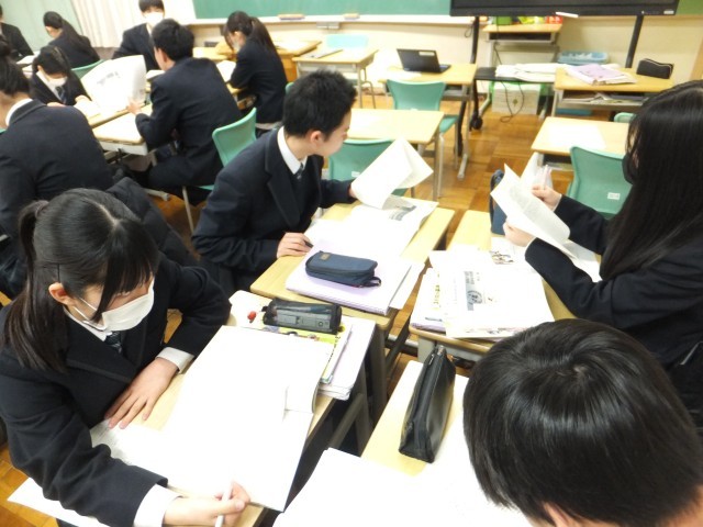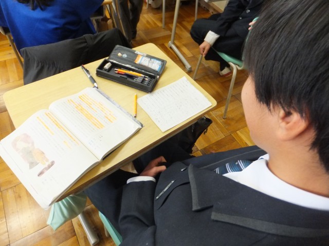 1月26日(月)2校時です。先々週の移動教室から1年生が、先週3日間の職場体験からは2年生が三中に戻ってきて、今週は全学年がそろいました。写真は、2年生の国語と英語、1年生の国語の授業です。